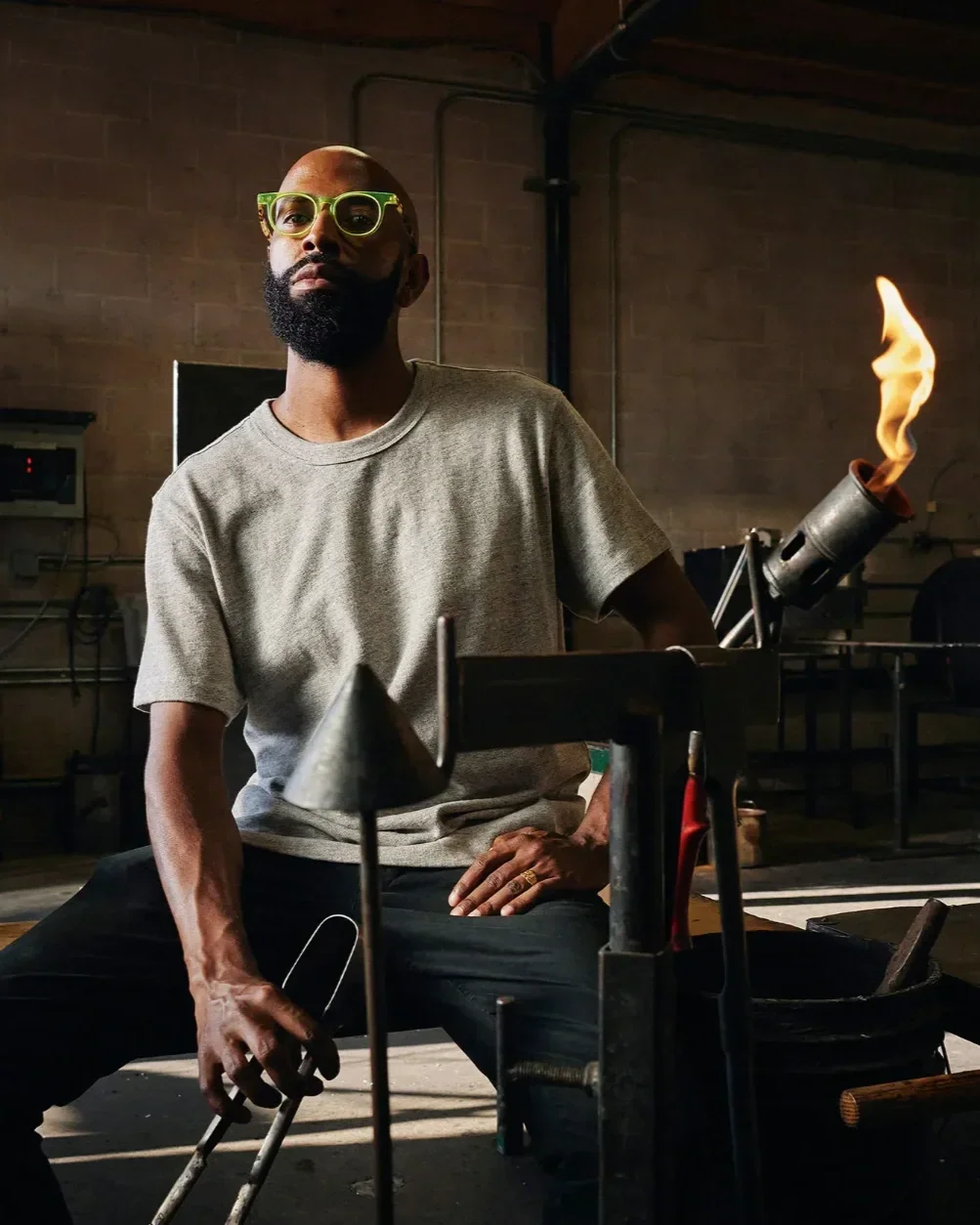 Cedric Mitchell is a Los Angeles-based glass artist from Tulsa, Oklahoma. Inspired by an eccentric mix of graffiti art, pop culture, and postmodernism, he creates work that ranges from functional to decorative art, combining simplicity with bold colors to craft hand-blown vessels with a purpose. Mitchell has completed residencies at the Corning Museum of Glass, the Penland School of Craft, and the Pilchuck Glass School. He developed Cedric Mitchell Design in 2018, where he creates blown glass for collections and retailers nationwide.